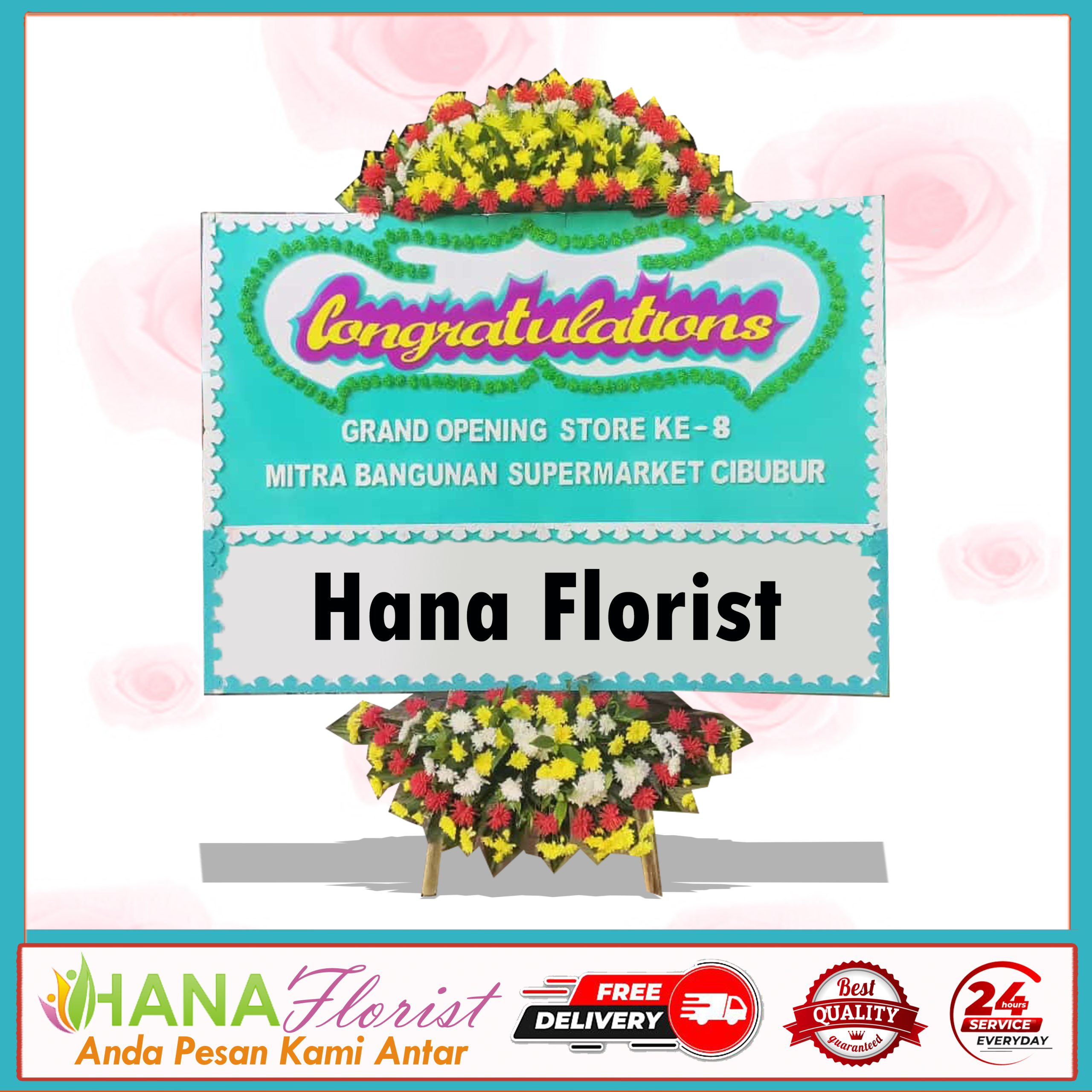 hana florist juga hadir di FB. dan juga hadir di beberapa marketplace.Dengan konsep memudahkan customer untuk memesan tanpa harus datang ke toko,sangan mudah bukan?. Ada beberapa ukuran karangan bunga papan selamat mulai dari.