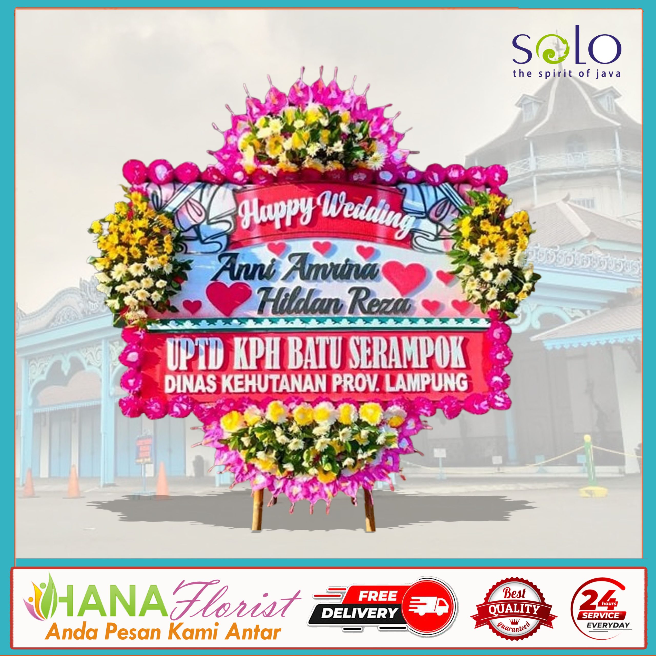 Untuk warna dan model kami bisa menyesuaikan dengan permintaan customer dan sesuai dengan acara. hanaflorist juga melayani pemesanan karangan untuk pengiriman wilayah surakarta, solo balapan,sukoharjo,boyolali dan juga melayani pemesanan ke luar kota atau lebih tepatnya seluruh indonesia. karena sudah memiliki rekan di seluruh indonesia. dengan harga terjangkau anda sudah bisa melakukan pemesanan dan pengiriman sampai lokasi tanpa biaya tambahan. dalam pengerjaan minimal 2 jam dikarenakan pembuatan sangat diutamakan kualitas. dibuat dengan bahan berkualitas. fresh dan rapi. pengiriman dilakukan oleh driver dari hanaflorist yang sudah terlatih, cekatan, dan ontime, sehingga meminimalisir angka kekecewaan untuk customer. nanti anda akan mendapat foto setelah pengerjaan dan foto beserta video setelah bunga sampai lokasi,guna untuk memberi bukti bahwa bunga sudah sampai lokasi.Untuk pembayaran hana florist memberikan solusi dengan proses administrasi setelah bunga sampai lokasi, jadi setelah bunga sampai lokasi silahkan anda untuk melakukan administrasi melalui rekening yang sudah diberikan oleh hana florist.